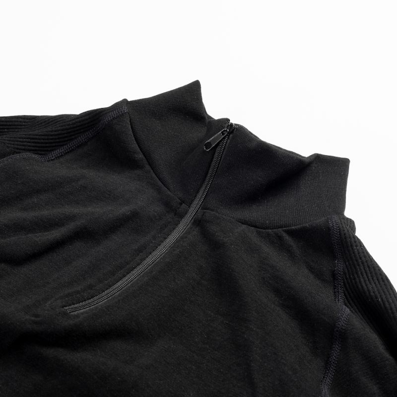 Bluzka termoaktywna ELDER ½ ZIP marki Fitanu powstała z połączenia wełny merino z włóknami syntetycznymi i włóknami elastanu.