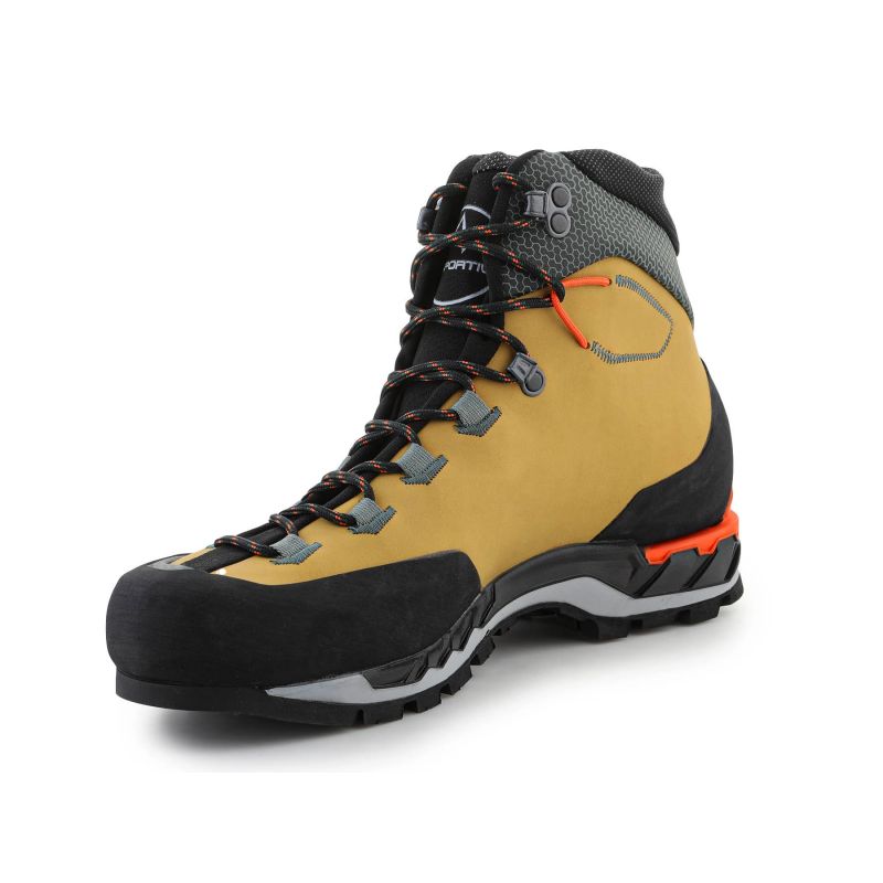 - La Sportiva Trango Tech Leather GTX w kolorze Savana Tiger to zaawansowane buty do wspinaczki wysokogórskiej i trekkingu, które oferują połączenie wytrzymałości i komfortu.