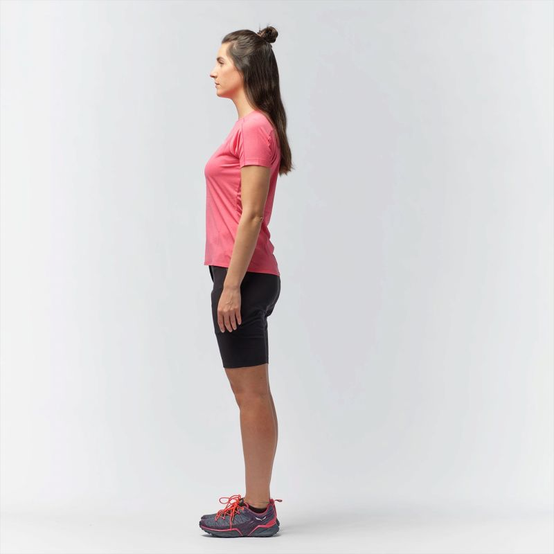 - Nasza damska techniczna koszulka z krótkimi rękawami i doskonałym odprowadzaniem wilgoci do uprawiania turystyki alpejskiej i treningów górskich.