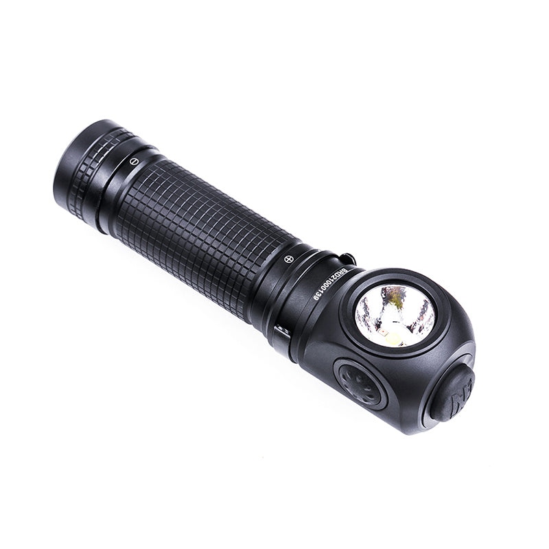 Tryby pracy zmienia się za pomocą dwóch przycisków umieszczonych z góry i boku korpusu, pozwalając na intuicyjny wybór natężenia światła. Górny przycisk odpowiadający za światło białe pozwala na chwilowe włączenie przy lekkim wciśnięciu, stałą pracę przy pełnym przytrzymaniu oraz zmianę trybów. Lewy przycisk pozwala na przełączanie między sygnałowym światłem niebieskim, czerwonym, oraz stroboskopem.