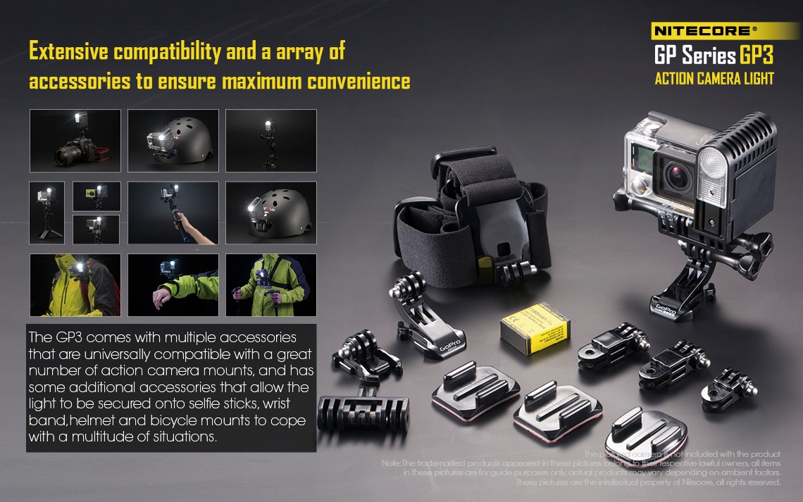 Latarka GP3 to doskonałe rozwiązanie do kamer Go Pro, zapewniających potrzebne oświetlenie podczas filmowania w warunkach słabego światła. Wbudowany i przesuwany dyfuzor zapewnia możliwość nagrywania oraz oświetlania bardziej dynamicznych i żywych obrazów, zwiększając ich jakość. Zasięg wiązki światła to 105 metrów, dzięki czemu mamy możliwość oświetlenia na większym dystansie.