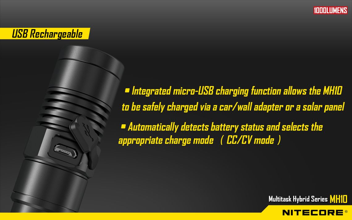 Latarki z serii MH mają w zestawie akumulator Nitecore, dzięki czemu kupując produkt macie Państwo wszystko co niezbędne. Dodatkową zaletą latarek z serii Multi-Hybrid jest możliwość ładowania akumulatora przez kabel USB.