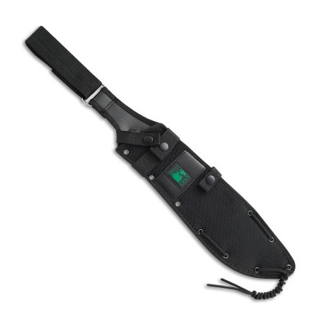 Maczeta survivalowa w swoim zestawie posiada nylonowy pokrowiec, który można przymocować do pasa.