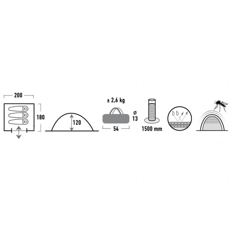 - Lekki, łatwy i szybki w obsłudze namiot dedykowany dla trzech osób.