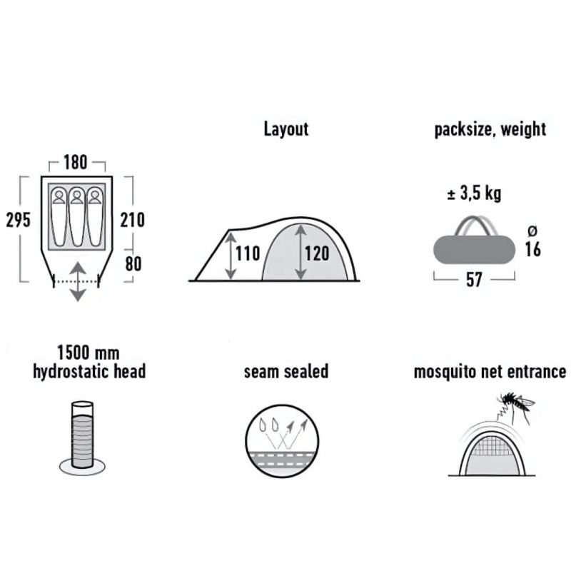 · Wymiary: 295×180 cm ( w tym 80 cm przedsionek ), wysokość 110 / 120 cm