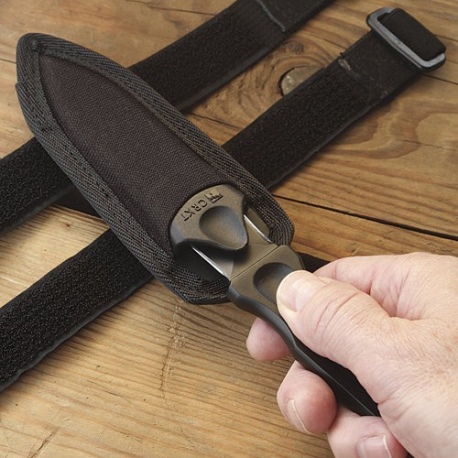 Duży otwór na rękojeści pozwala na zamocowanie linki, może być również noszony na szyi.