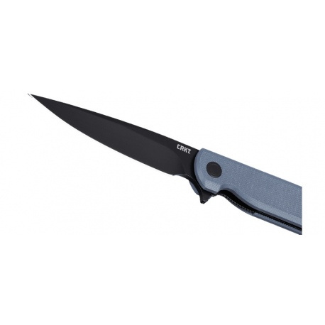 Klinga o profilu Drop Point i oxydowanym wykończeniu została wykonana z wytrzymałej i odpornej na korozję stali 14C28N.