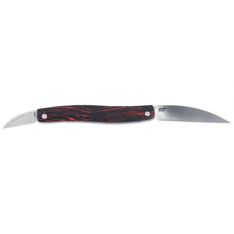 Posiada dwie głownie wykonane ze stali 12C27 Sandvik, o profilu Wharncliffe. Wykończenie Satin Finish.