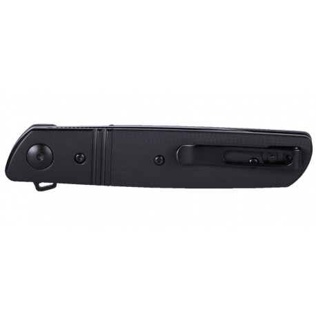 Stalowy, sprężysty klips umożliwia wpięcie noża za pasek czy krawędź kieszeni.