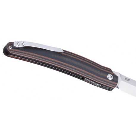 Jego ostrze o profilu Tanto wykonane jest ze stali D2 a blokada Liner Block zabezpiecza przed przypadkowym złożeniem klingi.