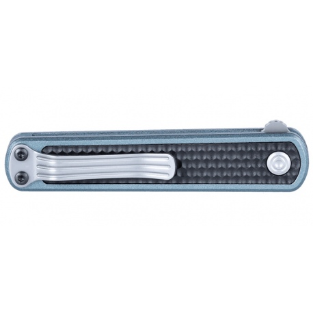 Stalowy klips umożliwia wpięcie noża za pas lub części garderoby.