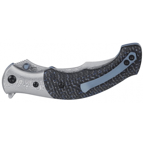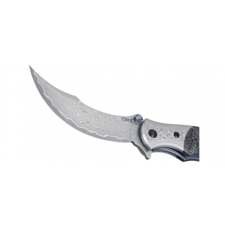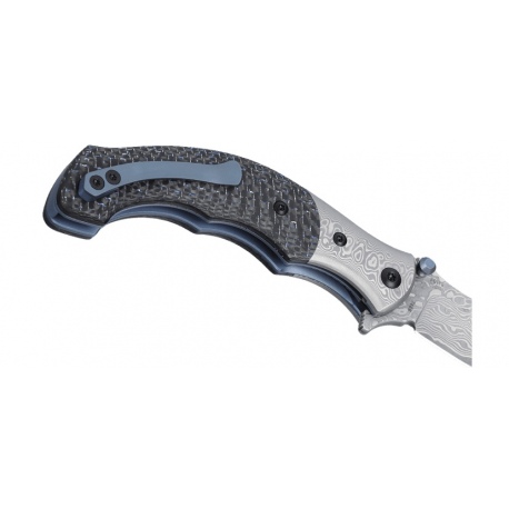 Mimo niewielkich rozmiarów robi oszałamiające wrażenie, dzięki wykonaniu ze stali damasceńskiej i charakterystycznemu wykończeniu oraz akcentom z anodyzowanego na niebiesko tytanu.