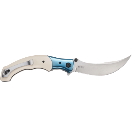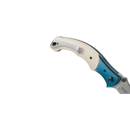 Podobnie jak stary perski kindżał ze stałym ostrzem, nóż składany CRKT Ritual ma długą, wyraźnie poprowadzoną krzywiznę ostrza i solidną rękojeść. Klasyczny design połączono z błyskawicznie otwierającym się mechanizmem IKBS, a zintegrowany z głownią flipper dodatkowo usprawnia cały proces.