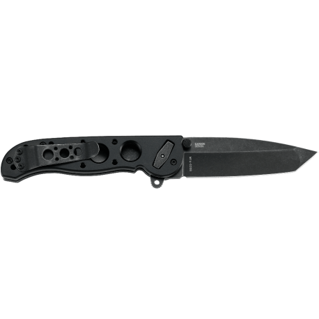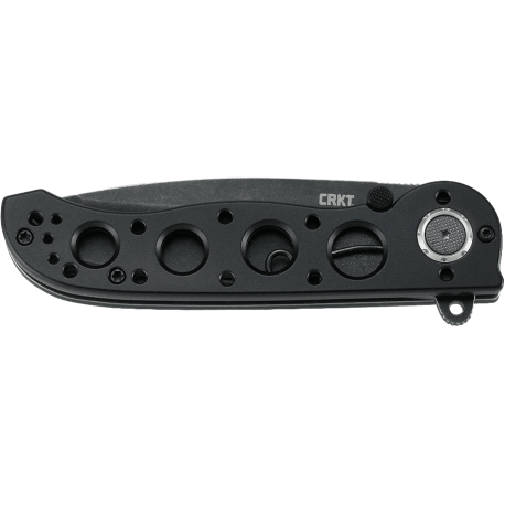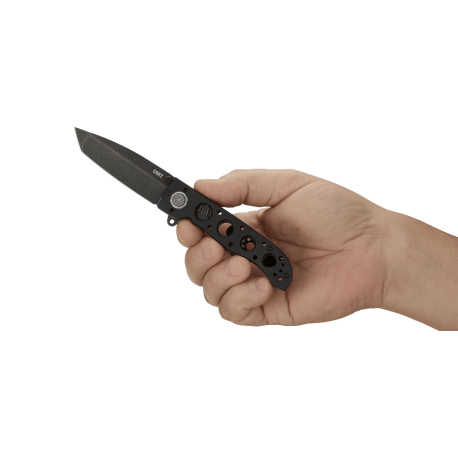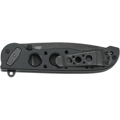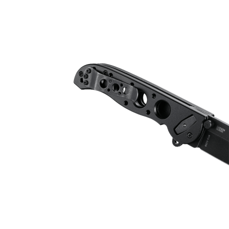 M16 to najpopularniejsza seria noży składanych jaką kiedykolwiek stworzyła firma CRKT. Ostrze o taktycznym profilu Tanto świetnie nadające się do walki, pchnięć i podważania wykonano z wysokiej jakości stali narzędziowej D2, która długo trzyma ostrość. Wykończenie jej na czarno metodą Stonewash pozostawia nieregularną powłokę która maskuje ślady powstałe podczas użycia. Zastosowanie systemu wspomagania Assisted Opening w postaci wewnętrznej sprężyny sprawia, że głownia wysuwa się z imponującą prędkością. System łożysk kulkowych IKBS umożliwia płynne rozłożenie klingi jedną ręką przy wykorzystaniu obustronnego kołka lub flippera pełniącego jednocześnie funkcję jelca chroniącego dłoń przed jej przypadkowym zsunięciem się na ostrze. Aluminiowa rękojeść z otworami, jest lekka oraz doskonale układa się w ręku. Bezpieczeństwu sprzyja karbowany grzbiet ostrza stanowiący stabilne podparcie dla kciuka oraz innowacyjna i niesamowicie wytrzymała blokada Deadbolt o bardzo prostym działaniu. Wystarczy nacisnąć duży srebrny, intuicyjny przycisk, aby złożyć folder. Całość uzupełnia czteropozycyjny klips mocujący.