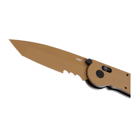 Ostrze typu Tanto z krawędzią częściowo ząbkowaną, wykonano z wytrzymałej stali D2 i posiada świetne właściwości tnące.
