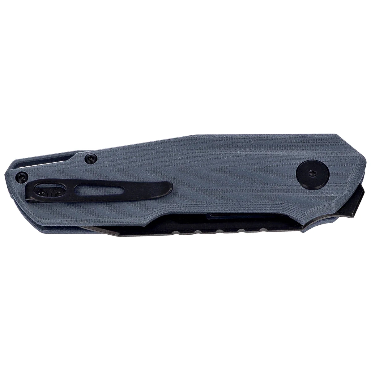 Rękojeść – zaprojektowana z myślą o pełnej kontroli i komforcie użytkowania przy zachowaniu kompaktowych rozmiarów. Okładziny z kompozytu G10 o lekkiej fakturze i matowym wykończeniu zapewniają pewny chwyt, nawet w wilgotnym środowisku. Ergonomiczne wyprofilowanie z wyraźnym podcięciem na palec wskazujący poprawia stabilność pracy przy precyzyjnych zadaniach. Na grzbiecie znajduje się frezowanie (jimping), które dodatkowo zwiększa przyczepność kciuka. Wewnętrzne stalowe linery wzmacniają całą konstrukcję i są integralną częścią systemu blokady liner lock, który pewnie utrzymuje głownię w pozycji otwartej. Klips deep carry pozwala na dyskretne przenoszenie noża w kieszeni, a otwór w tylnej części rękojeści umożliwia montaż linki zabezpieczającej. Całość uzupełnia dekoracyjny pivot z graficznym detalem – znakiem firmowym projektanta.