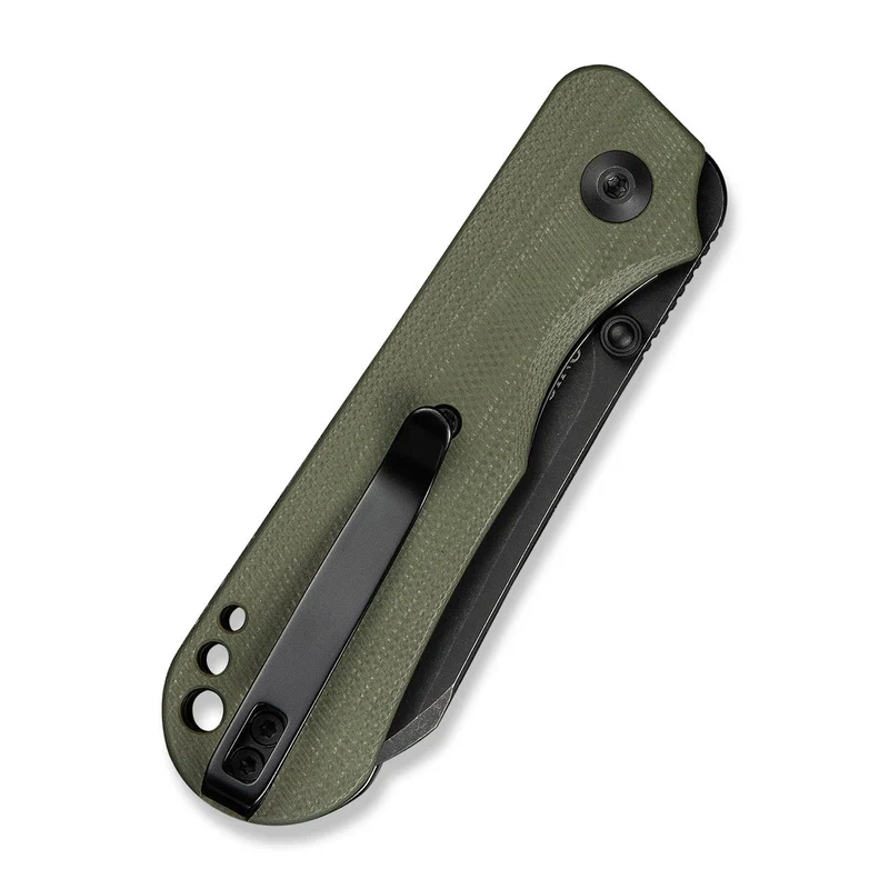Rękojeść – wykonana z kompozytu G10, oferuje lekkość, odporność na uszkodzenia mechaniczne i pewny chwyt – nawet w trudnych warunkach. Teksturowana powierzchnia poprawia kontrolę nad narzędziem, a kompaktowe wymiary wspierają mobilność i dyskrecję noszenia. Stalowe linersy i backspacer z G10 wzmacniają całą konstrukcję bez znaczącego wpływu na wagę. Mechanizm liner lock działa płynnie i niezawodnie, a otwarta konstrukcja rękojeści ułatwia utrzymanie noża w czystości. Nóż wyposażono w jednostronny klips typu tip-up po prawej stronie oraz otwór na linkę, który pozwala na zabezpieczenie noża lub jego personalizację. Rękojeść Crabby to udane połączenie ergonomii, wytrzymałości i taktycznego stylu – idealne dla codziennego użytkownika EDC.