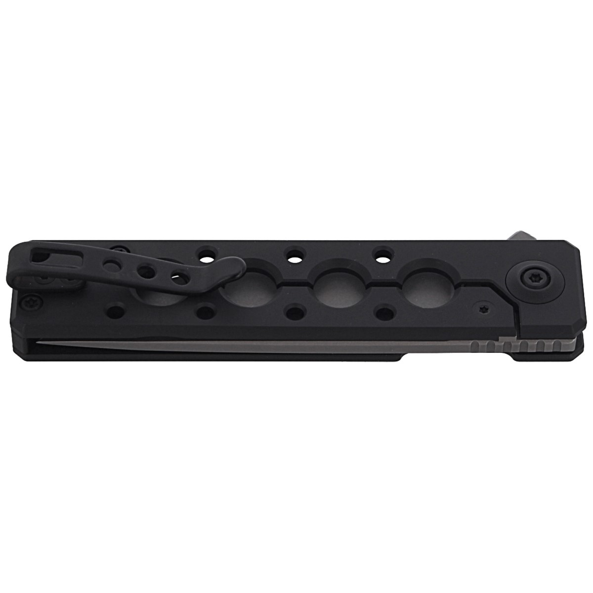 Rękojeść – grube kawałki czernionego litego tytanu w których dla zmniejszenia wagi wykonano kilka otworów. Dla kontrastu otwory zostały wykończone satynowaniem. Okładziny zostały przykręcone do tytanowego backspacera. Prostota i solidność konstrukcji dają pewność wieloletniego użytkowania. Klips typu deep carry, jednopozycyjny (po prawej stronie) wykonany z tytanu, umożliwia przenoszenie noża w pozycji tip-up. Nad klipsem znajduje się lanyard hole czyli otwór do przewleczenia linki zabezpieczającej lub ozdobnej. Podobnie jak w innych modelach, oś pivota ozdobiona jest stylizowanym logo producenta.