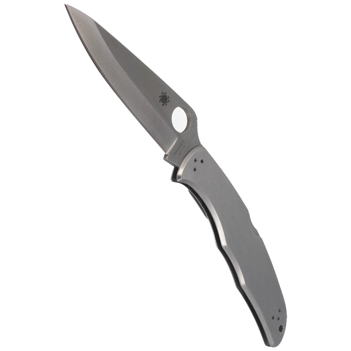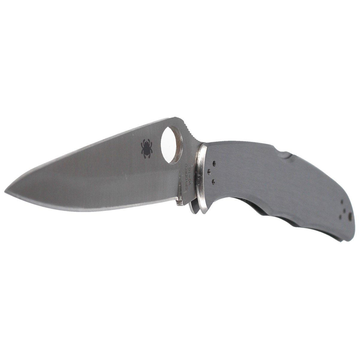 Głownia – o profilu Clip Point wykonana z łatwej do naostrzenia, dobrze trzymającej ostrość japońskiej nierdzewnej stali VG-10, hartowanej w przedziale 59-61 HRC. Ostrze gładkie Plain wyprowadzono szlifem niskim płaskim (Saber Grind) zapewniającym doskonałą geometrię i wytrzymałość. Powiększone 14 mm okrągłe wycięcie SpyderHole ułatwia otwarcie noża kciukiem. Karbowany fragment grzbietu głowni, rampa (jimping / crosshatching) ustawia kciuk, daje solidne podparcie oraz ułatwia operowanie folderem. Blokada głowni Back-Lock z dodatkowym wycięciem Boye Detent, zapobiegającym przed przypadkowym zwolnieniem blokady przy mocnym uchwyceniu noża.