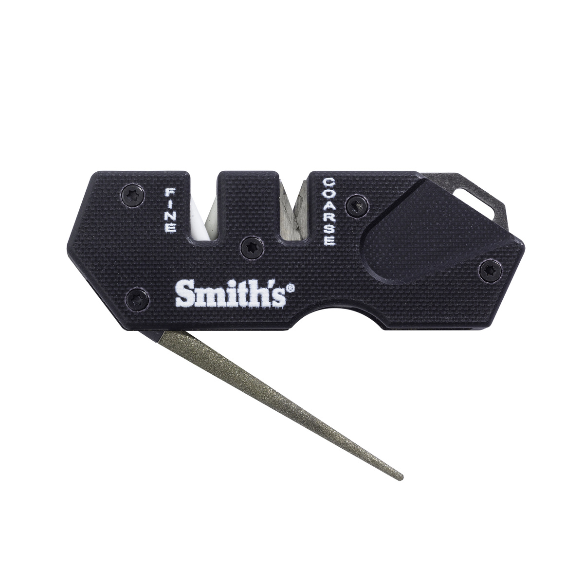PP1-Mini Tactical Black, wielofunkcyjna kieszonkowa ostrzarka Pocket Pal Knife Sharpener amerykańskiej firmy Smith’s. Pozwala łatwo i sprawnie naostrzyć nóż kuchenny, myśliwski, wędkarski, EDC, drobne narzędzia oraz haczyki wędkarskie.