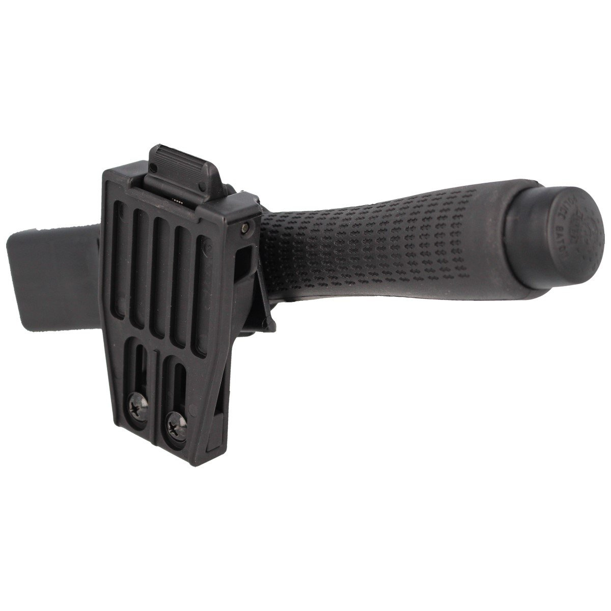 UBC-05 – (Quick Change System) uniwersalne mocowanie na pas wsuwane – pozwala na szybką wymianę uchwytu na pałkę na inny uchwyt z mechanizmem rotującym. Mocowanie pozostaje na pasie – musisz jedynie wybrać inną kaburę i ją zamocować. Dzięki wysoce elastycznemu systemowi, użytkownik ma możliwość zamiany wyposażenia na takie, jakie jest mu w danej chwili niezbędne. Kabura na pałkę teleskopową, może być wymieniona na ładownicę na magazynek lub pokrowiec na latarkę. Mocowanie UBC-05 pasuje do większości pasów o szerokości 32-50 mm, a po wyjęciu regulacji z uchwytu nawet do 60 mm (pas policyjny / duty belt). W celu uniknięcia przesuwania się sprzętu na pasie np. podczas biegu, mocowanie wyposażono w dwie śruby regulacyjne, którymi blokujemy mocowanie w wymaganym miejscu na pasie.